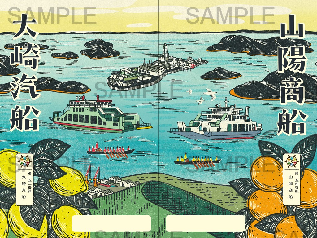152番社 大崎汽船、154番社 山陽商船の2社の御船印をあわせると、1枚の絵柄になります。