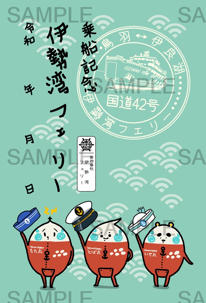 ・オリジナルキャラクター印は、船内売店、鳥羽フェリーターミナル売店、伊良湖のりば発券窓口で販売しております。